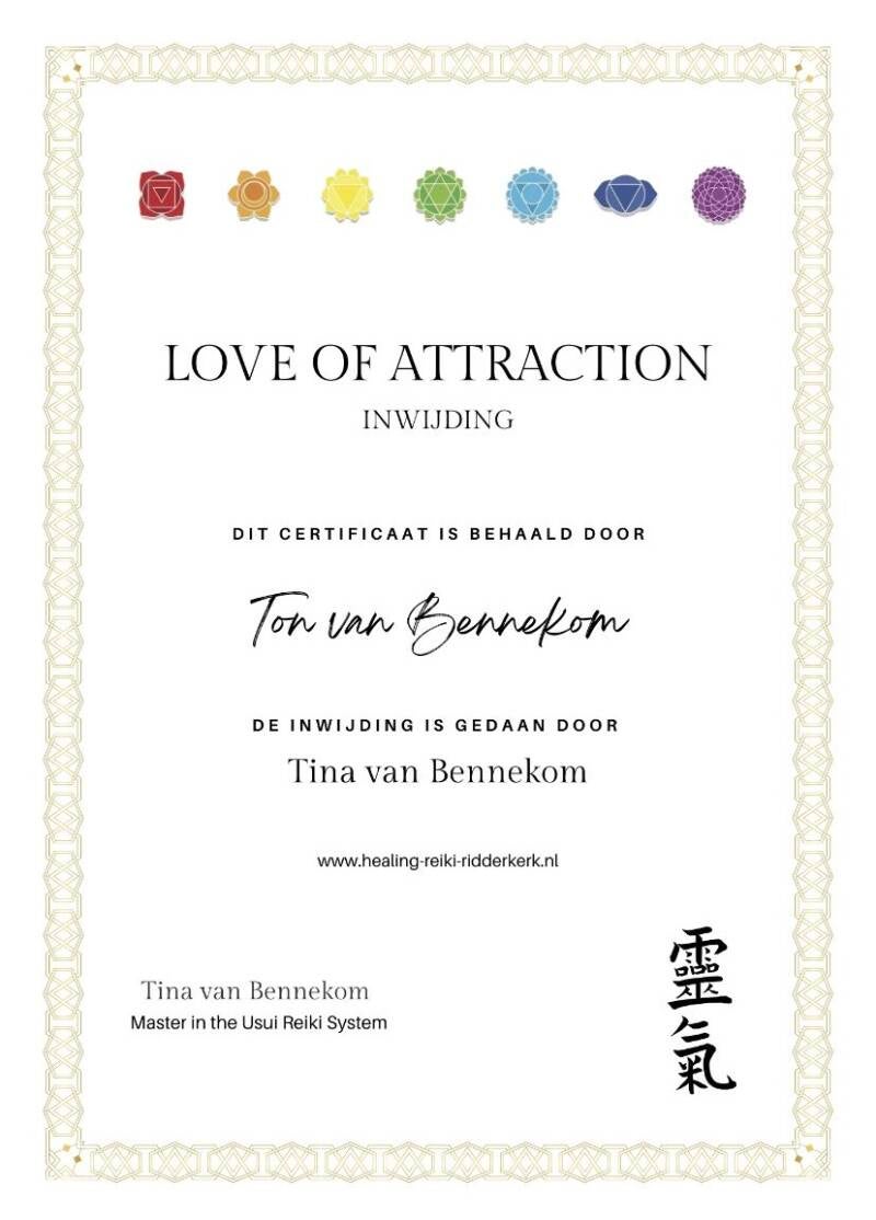 " Dank je wel Tina / Ton, de REIKI 3A CURSUS was een mooie ervaring. "