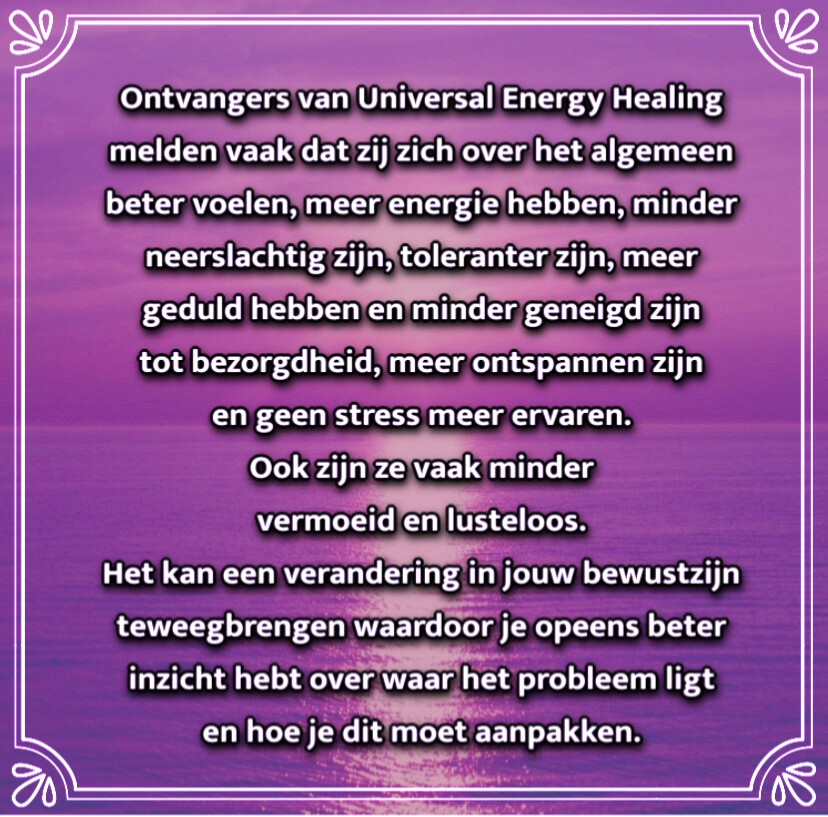 " Als je open staat voor het ontvangen van universele levensenergie, dan kan ik je één van de meest liefdevolle
